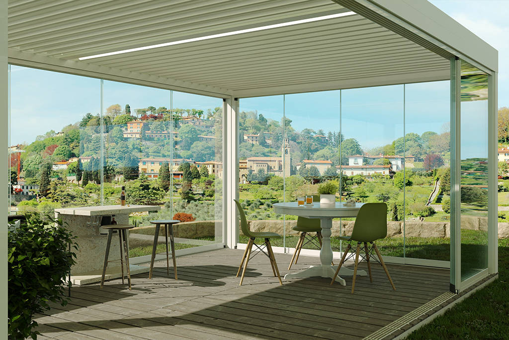 Il peso della vetrata scorrevole scarica sul pavimento, per questo è la soluzione ideale per chiudere portici, pergolati, gazebo, pergotende e strutture in metallo o in legno. Non solo. Trattandosi di vetrate panoramiche amovibili manualmente, non costituiscono volumetria (se non si modifica la destinazione d’uso assentita) e perciò sono perfette per chiudere e proteggere ermeticamente tutti gli spazi esterni coperti e i dehor dei bar, ristoranti e locali pubblici.